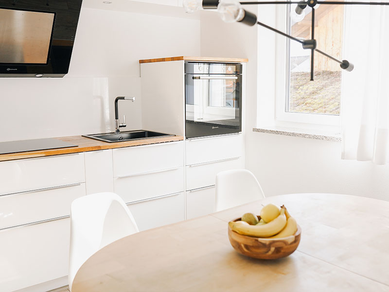 - Vollausgestattete Küche mit Elektrogeräten (Geschirrspüler, Herd, Kühlschrank mit Gefrierfach, Kaffeemaschine, Wasserkocher)